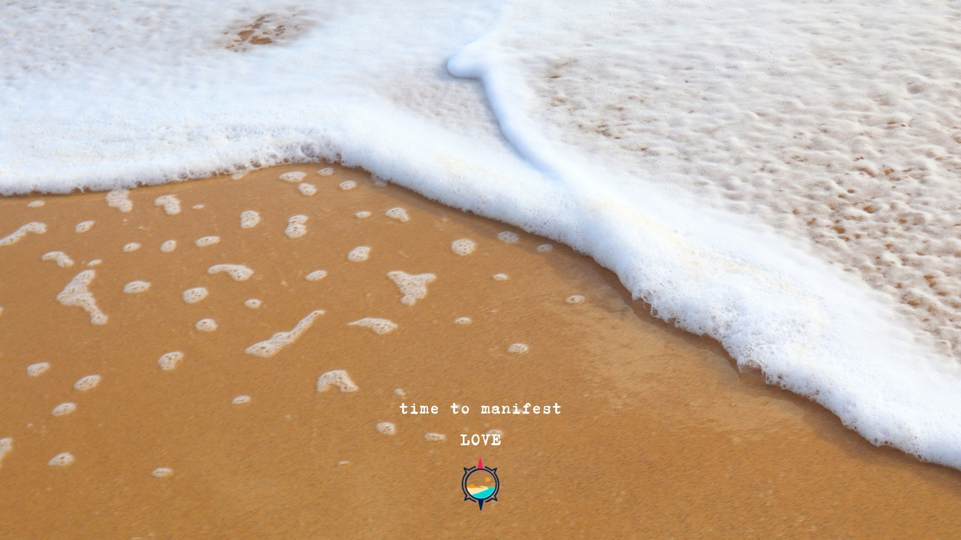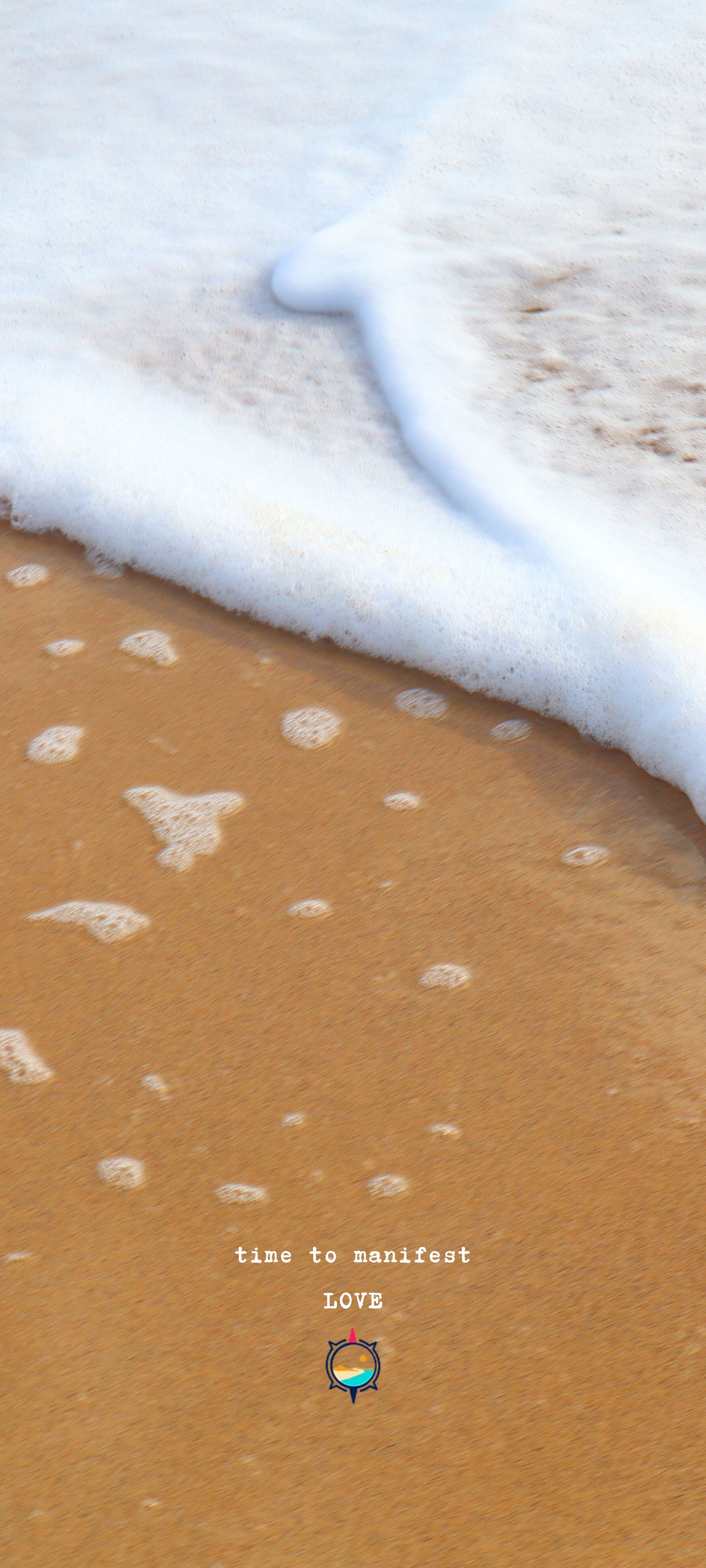 A soothing close-up of sea foam meeting golden sand, paired with an inspirational quote that encourages presence, trust, and flow.