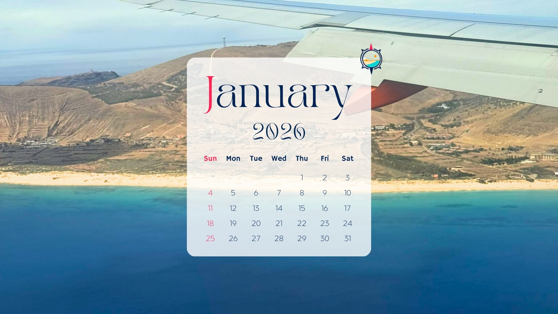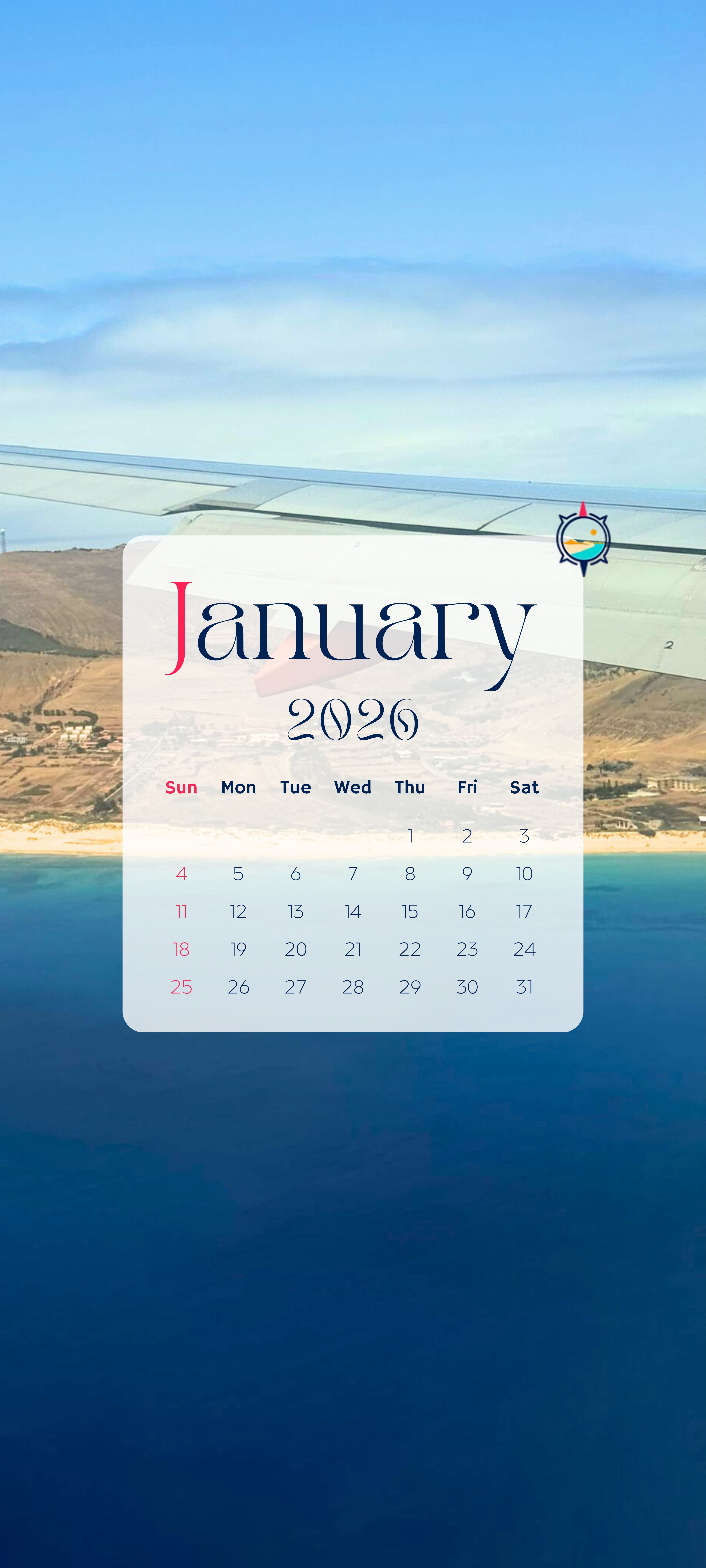 2. ✈️ Flying into the Paradise – January 2026 Calendar