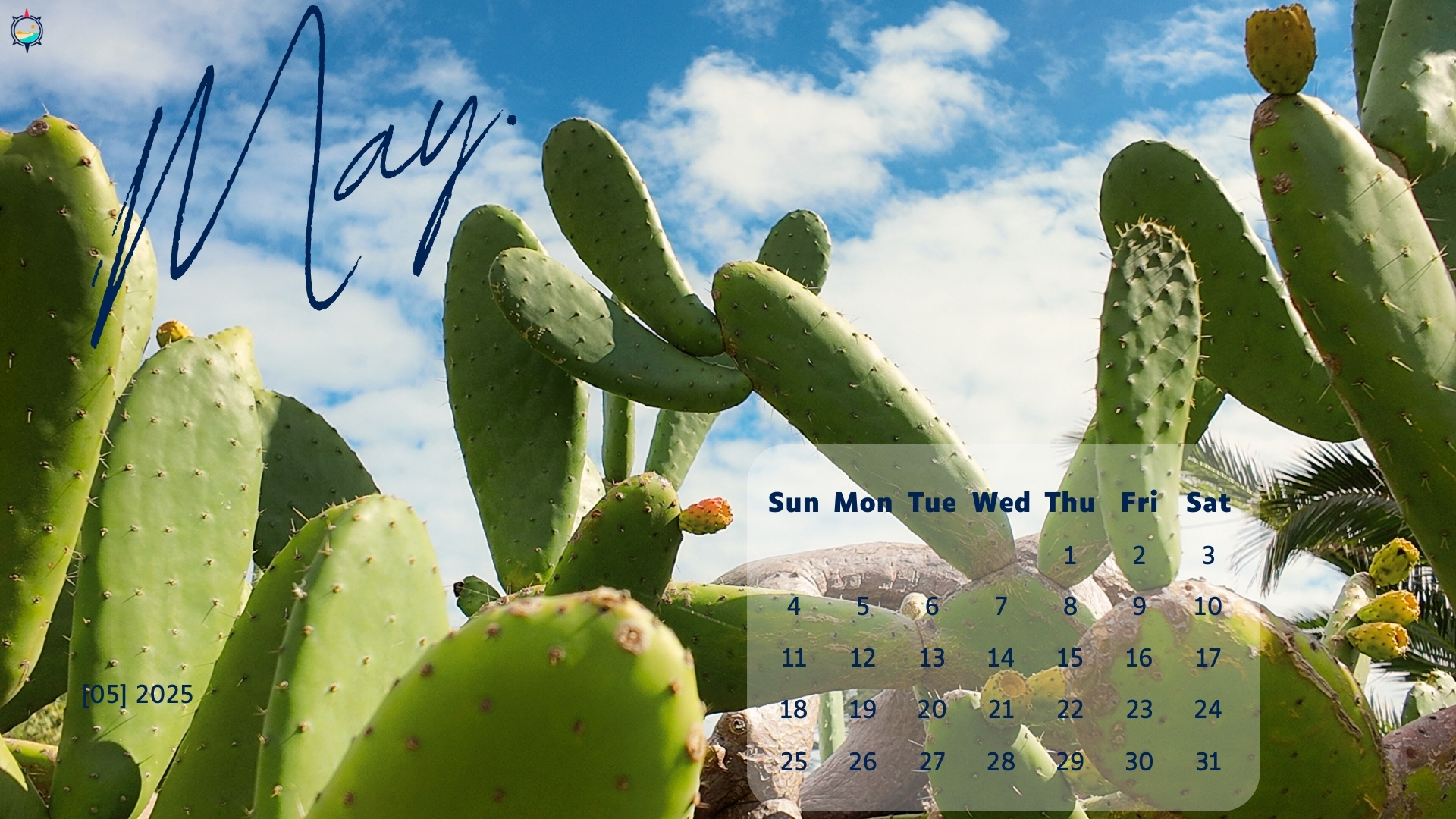1. Cactus Field in the Central North of Porto Santo with Monthly CalendarThis vibrant scene captures the charming cactus fields that thrive in the island's central north, paired with a sleek calendar for May. A reminder of resilience and natural beauty in every glance.